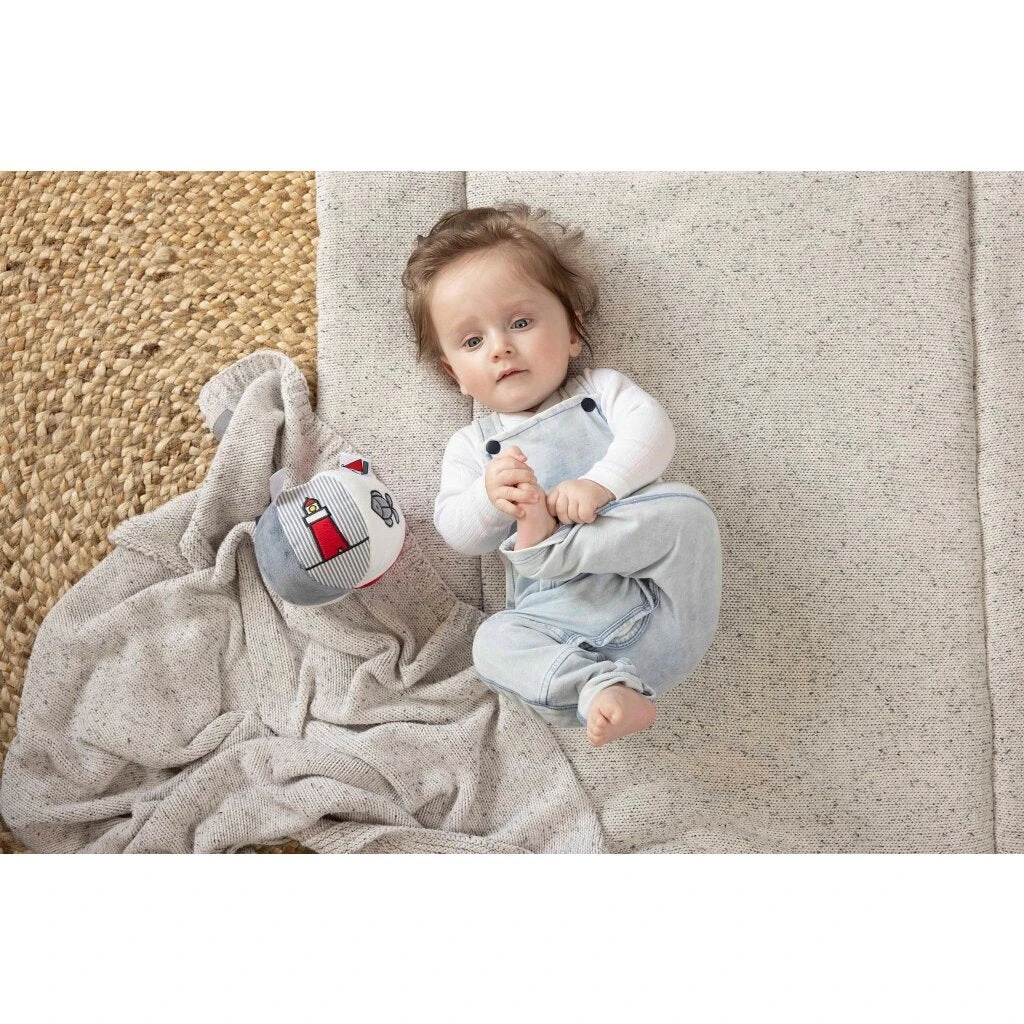 Nijntje bal gemaakt van zachte materialen, in grijs met wit gestreepte uitvoering uit de Fun at Sea collectie. Beschikt over een rammeltje en verschillende afbeeldingen. Diameter: ongeveer 10 cm. Op 30 graden wasbaar in de wasmachine. Geschikt voor alle leeftijden.