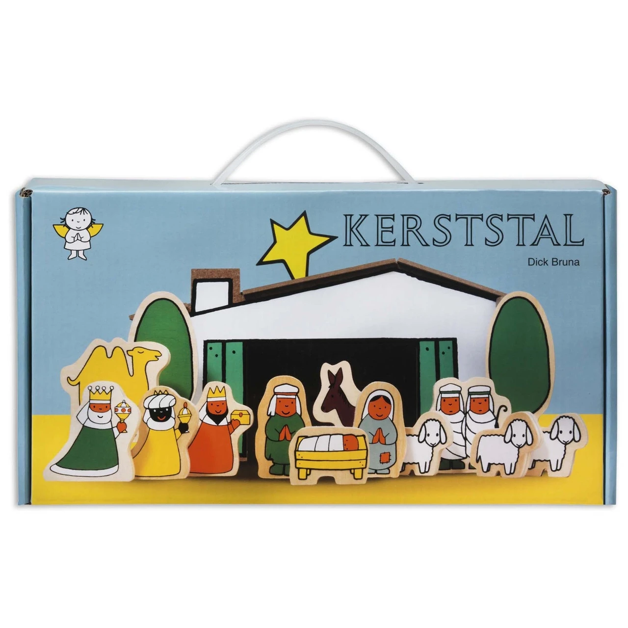 Leuke kerststal gemaakt door Dick Bruna. Illustreert het kerstverhaal door middel van houten figuren.