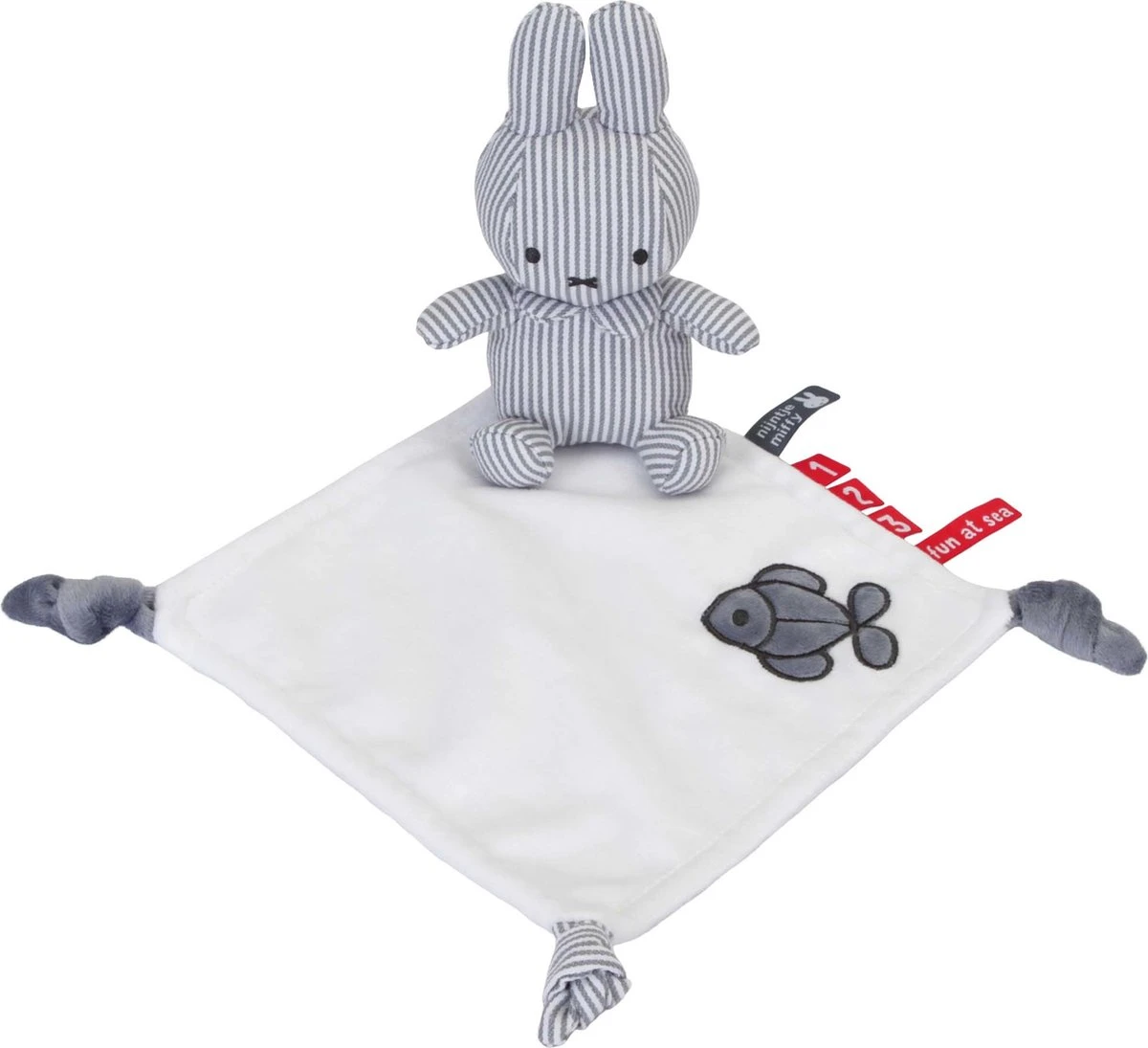 Dit is een heerlijk zacht knuffeldoekje van nijntje. Door de knoopjes in de hoeken is het knuffeldoekje gemakkelijk beet te pakken. Ideaal speelgoed voor in de box. Ook leuk om te geven als kraamcadeautje. Vanaf de geboorte. De nijntje fun at Sea collectie in rib stof is gemaakt van zachte materialen. De uitgebreide lijn bestaat o.a. uit knuffels in verschillende maten, een muziekdoosje, een ringrammelaar, een muziekmobiel, een trilfiguur en een knuffeldoekje. De nijntje fun at sea collectie is leuk als decoratie voor de babykamer maar uiteraard ook heerlijk om mee te knuffelen en te spelen!