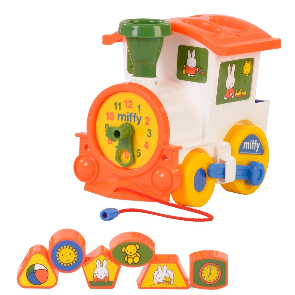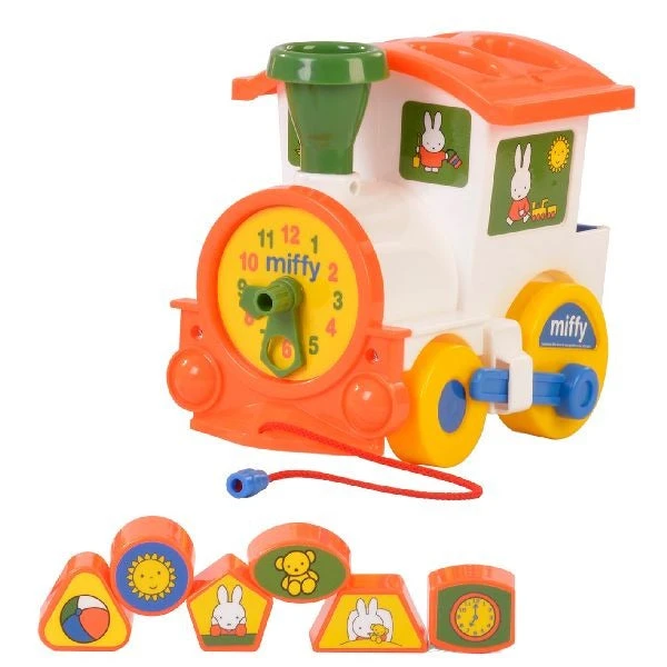 Op een speelse wijze de motoriek van uw kindje verhogen? Dat kan met deze kleurrijke trein van nijntje! Deze trein is rondom voorzien van nijntje afbeeldingen. Ook op de verschillende blokken die bij deze trein zijn bijgevoegd, vind je leuke afbeeldingen van nijntje. Met leerzame klok aan de voorzijde van de trein. Geschikt voor kinderen vanaf 1 jaar.